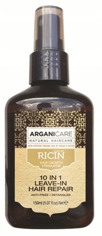 Rycynowy kompleks 10 in 1 natychmiastowa naprawa. Zapewnia natychmiastowe wygładzenie i rozplątywanie końcówek, Zapobiega i leczy rozdwojone końcówki. Chroni przed czynnikami zewnętrznymi, uszczelnia łuskę włosa. Zapewnia jedwabista gładkość dodając nieodpartego blasku włosom. Wspomaga wzrost włosów, ułatwia rozczesywanie. Zawiera olej rycynowy, peptydy jedwabiu i białko pszenicy , olej arganowy, masło Shea , prowitaminę B5