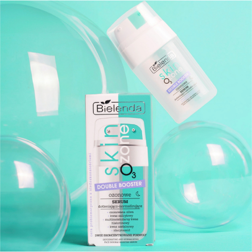✨Double booster ozonowe serum dotleniająco-normalizujące, 2×7,5 ml z linii Bielenda SKIN O3 ZONE dla cery problematycznej z niedoskonałościami. Serum jest przeznaczonoe na noc, dedykowane cerze problematycznej z niedoskonałościami. Aktywna, podwójna kremowo-żelowa formuła normalizująca, wygładza, zmiękcza, redukuje niedoskonałości, zwęża pory i przywraca skórze równowagę.