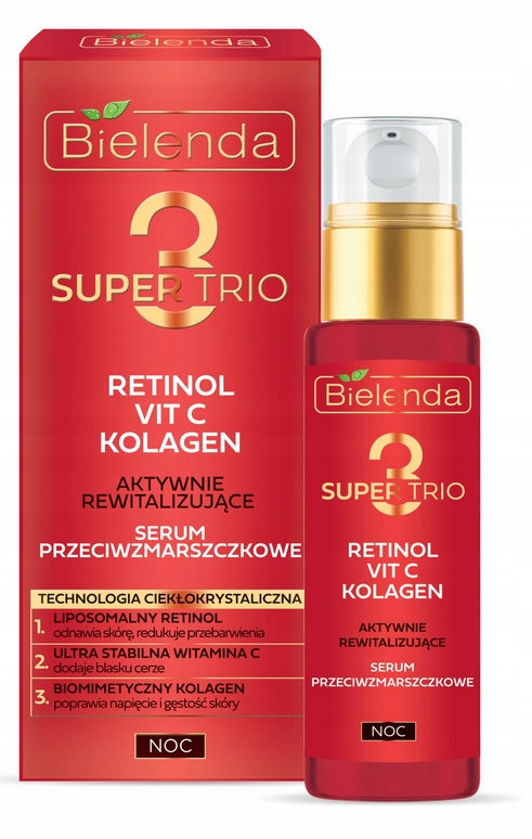 BIELENDA SUPER TRIO RETINOL VIT C KOLAGEN REWITALIZUJĄCE SERUM PRZECIWZMARSZCZKOWE NA NOC 30ML