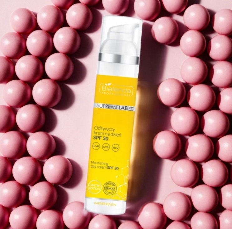 BIELENDA SUPREMELAB ODŻYWCZY KREM NA DZIEŃ SPF30 Z CERAMIDAMI 100ML to wielofunkcyjny produkt dla cery suchej i wrażliwej. Zapewnia intensywne nawilżenie, odbudowuje barierę ochronną skóry dzięki ceramidom oraz chroni przed szkodliwym działaniem promieni UV dzięki filtrowi SPF30. Krem wygładza, uelastycznia skórę i wspiera regenerację, pozostawiając ją miękką i odżywioną. Lekka konsystencja sprawia, że idealnie sprawdzi się pod makijażem w codziennej pielęgnacji.