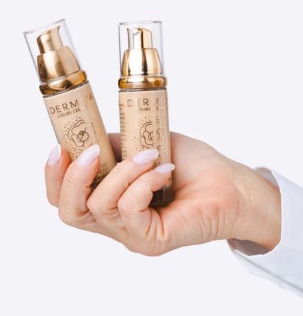 ✨Pielęgnacyjny podkład 4w1 w odcieniu 03 z serii Dermika Luxury Ceramides, zaprojektowany dla wymagającej skóry dojrzałych kobiet, łączy w sobie właściwości fluidu, serum, korektora i oferuje ochronę SPF 30. Jego aksamitna formuła doskonale dopasowuje się do skóry, zapewniając idealne krycie i jednolity blask, a także skutecznie maskuje zmarszczki, zaczerwienienia i przebarwienia.