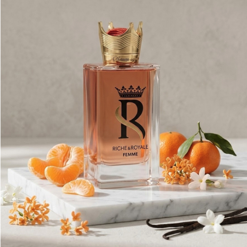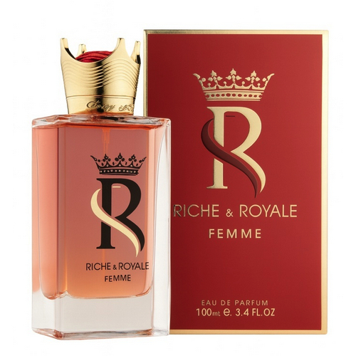 Fragrance World Riche Royale Femme to woda perfumowana, która stanowi definicję elegancji, prestiżu i ponadczasowego szyku. Kompozycja ta została zaprojektowana dla kobiet, które pragną podkreślić swoją pewność siebie i charyzmę zapachem o szlachetnym, bogatym charakterze. Riche Royale Femme to olfaktoryczny portret nowoczesnej arystokratki – zapach jest harmonijny, głęboki i emanuje aurą „quiet luxury”. Łączy w sobie promienność owocowych akordów z aksamitnym sercem kwiatowym i trwałym, orientalnym fundamentem, tworząc kompozycję idealnie zbalansowaną i niezwykle kobiecą.
