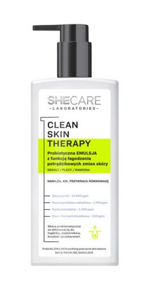 SHECARE PROBIOTYCZNA EMULSJA DO CIAŁA ŁAGODZĄCA NA RANY PO TRĄDZIKOWE 225ML