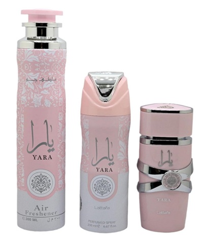 ZESTAW LATTAFA YARA WODA PERFUMOWANA 100ML SPRAY 200ML AIR FRESHENER 300ML