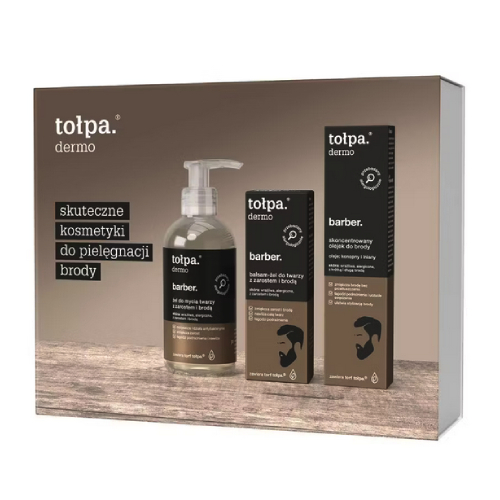 ZESTAW TOŁPA DERMO BARBER ŻEL DO MYCIA BALSAM-ŻEL DO TWARZY I OLEJEK MĘSKI